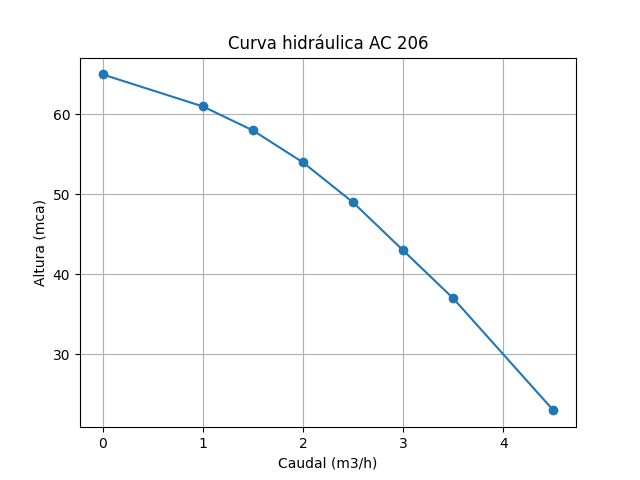 - 2 m³/h → 54 mca