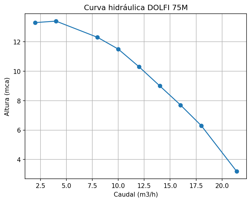 La DOLFI 75M es una bomba sumergible de mayor capacidad, diseñada para el bombeo de aguas limpias en aplicaciones domésticas, agrícolas ligeras y pequeños sistemas de evacuación y trasvase.