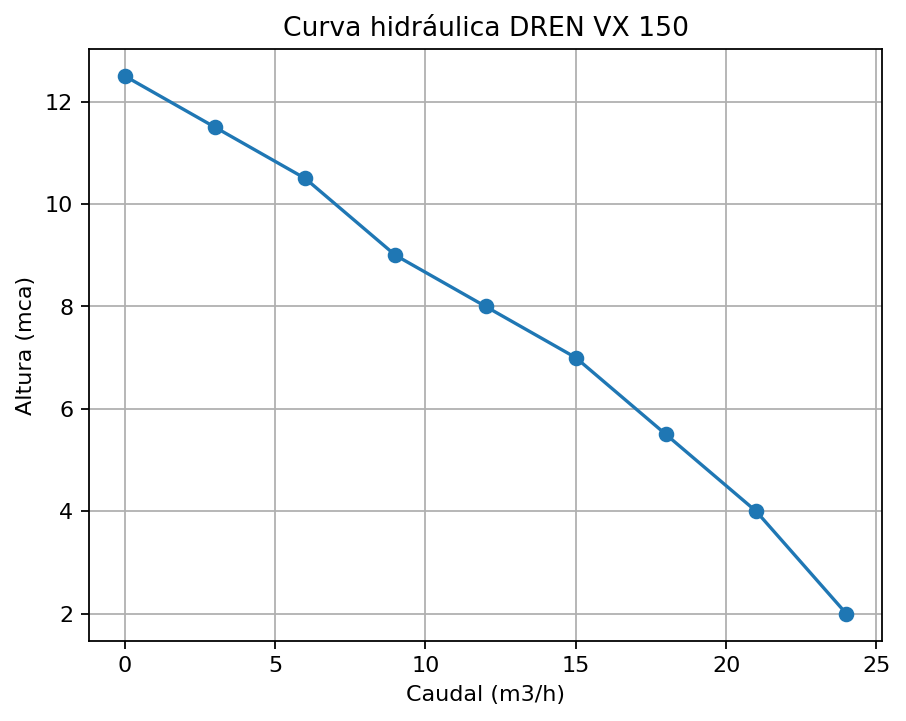 - 0 m³/h → 12,5 mca